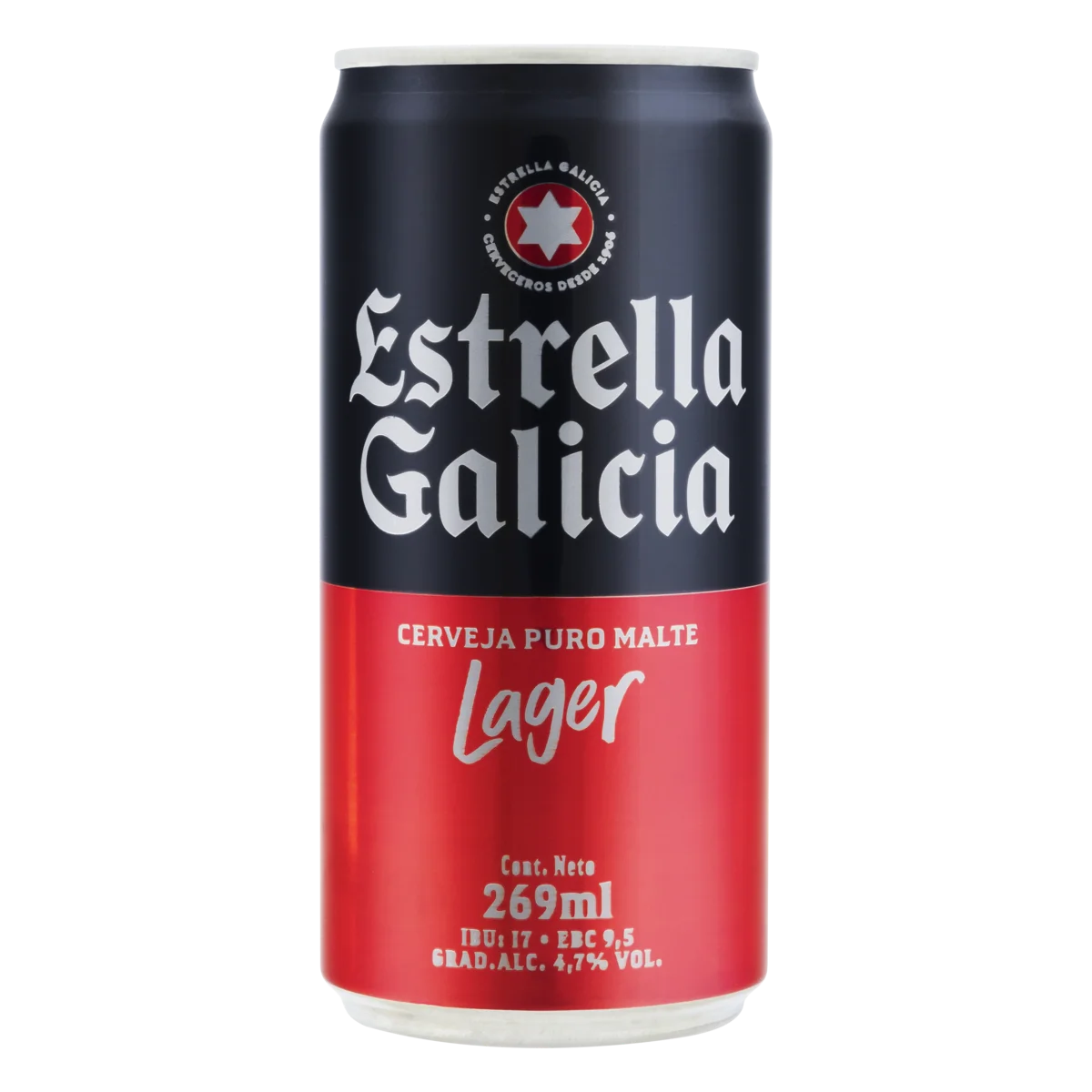 Cerveja Lager Puro Malte Estrella Galicia Lata 269ml (GELADA)